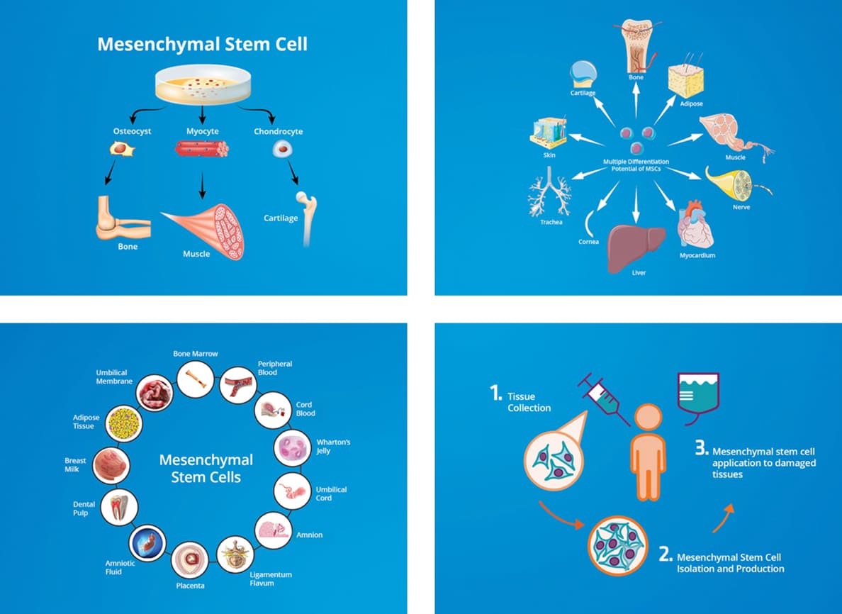 La producción y aplicación de células madre mesenquimales derivadas de la médula ósea y del tejido adiposo se realizan de forma autóloga (específica de cada persona).
