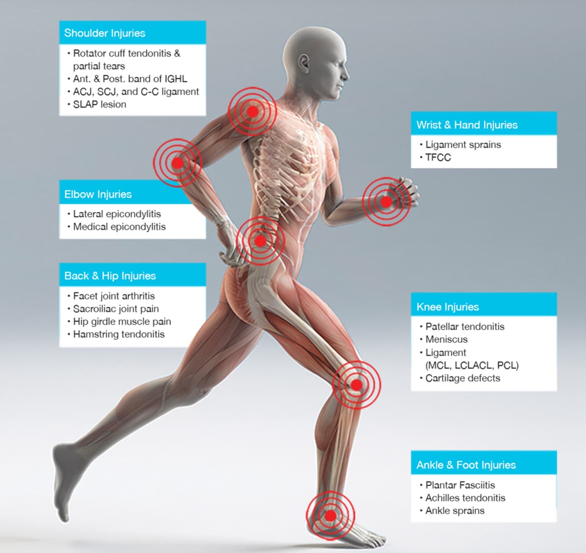 Las plaquetas del PRP ayudan en la curación de heridas y lesiones y aumentan la generación de colágeno, cartílago, tendones y ligamentos en los tejidos blandos.